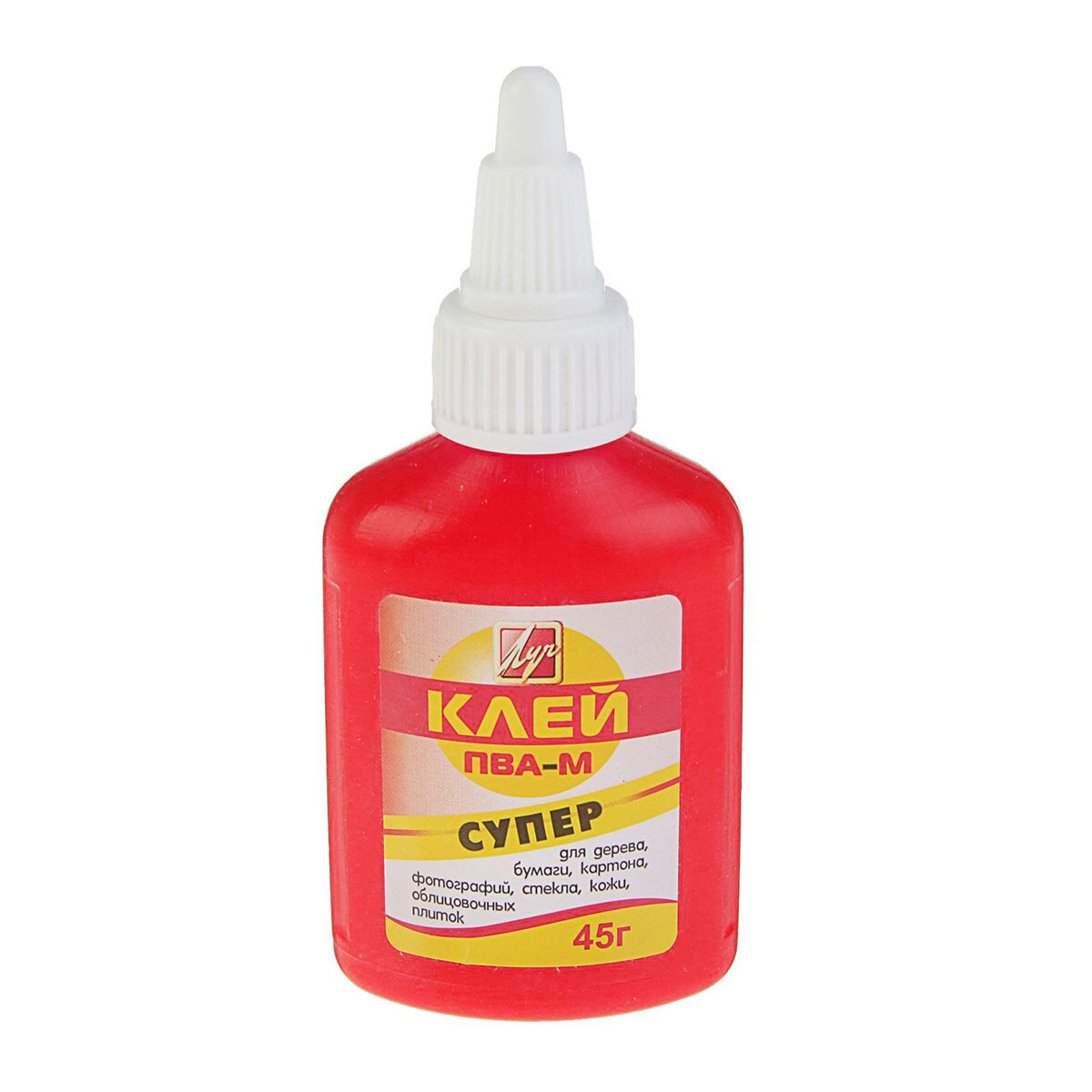 10 цен на Клей ПВА-М канцелярский универсальный, 45 г, в красном флаконе, Луч