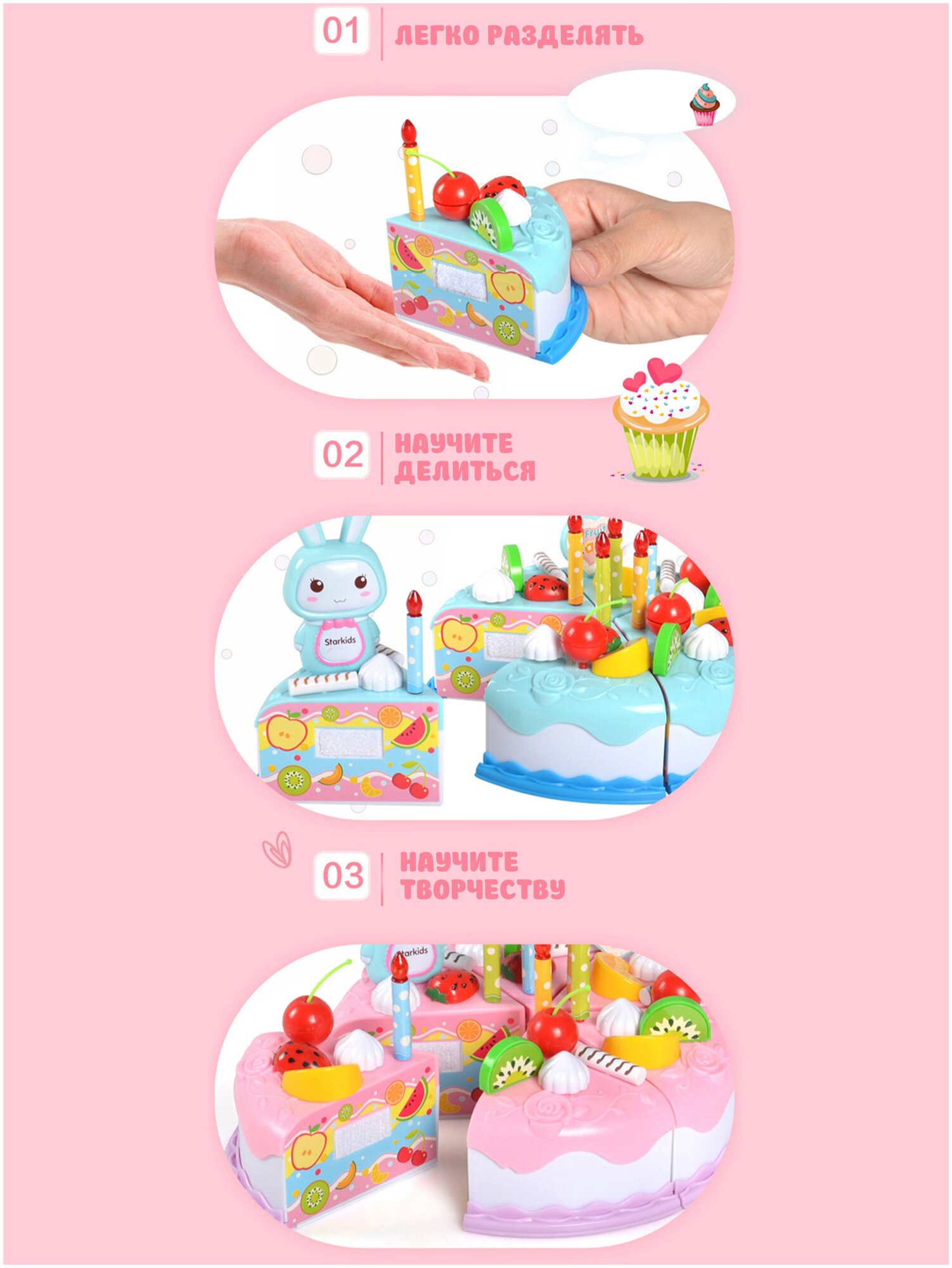 Отзывы на Набор игровой "Торт", от 2 лет, 37 элементов, пластик, голубой