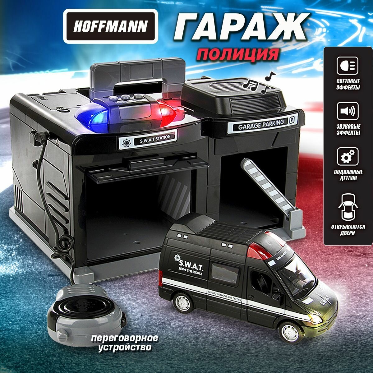 Парковка для машинок, Hoffmann / Гараж детский, игрушка / "SWAT" машинка, со светом, звуком и рацией информация: