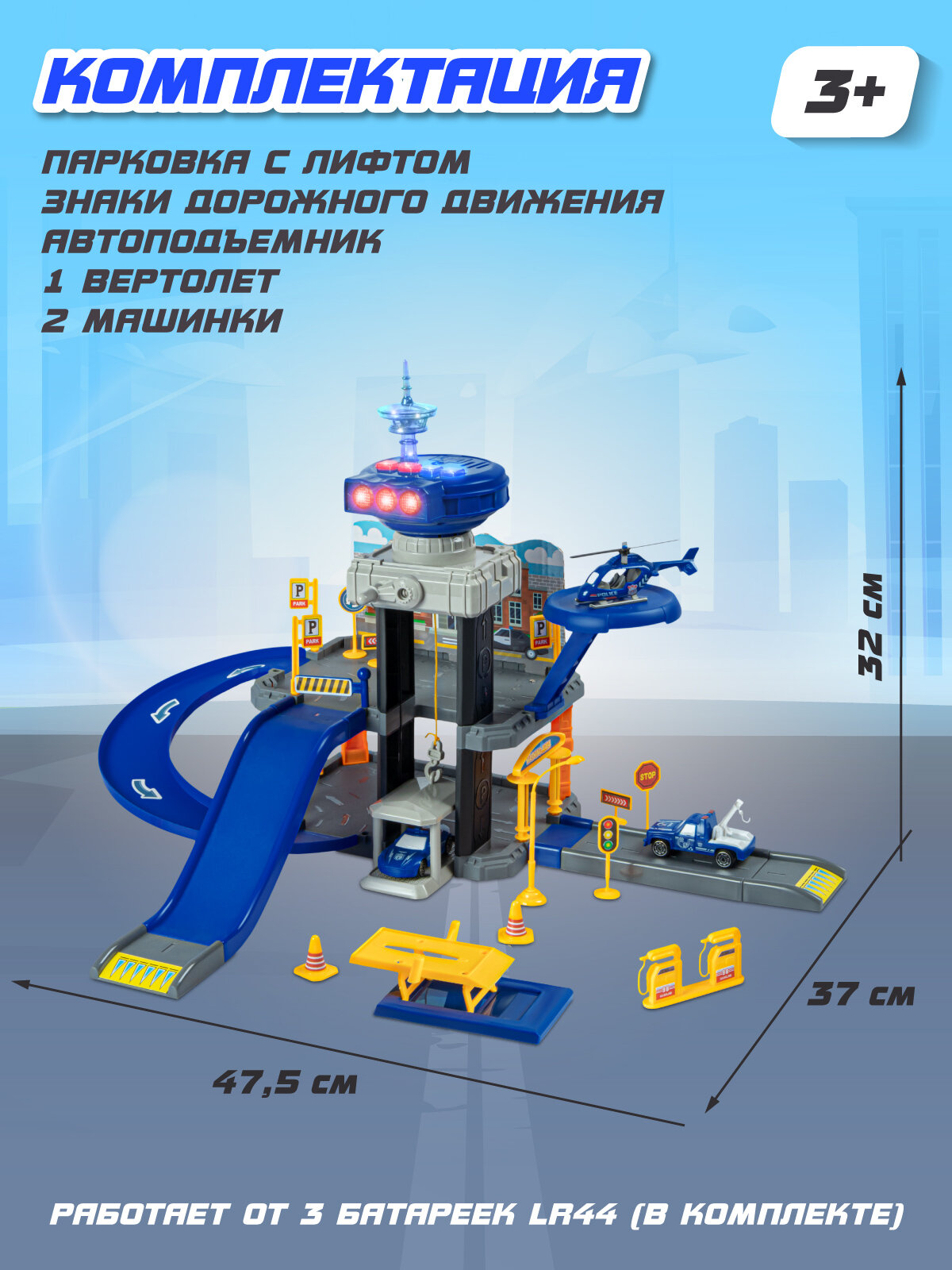 Парковка "Полиция" с лифтом/ручной механизм, в комплекте машинки/вертолет, свет, звук, JB0405295 информация: