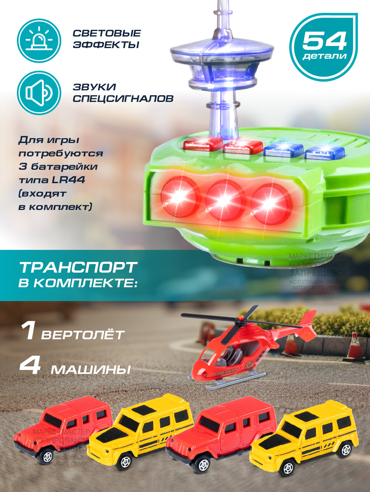 Парковка "Пожарная" с лифтом/ручной механизм, в комплекте машинки/вертолет, свет, звук, JB0405298 1 700 ₽