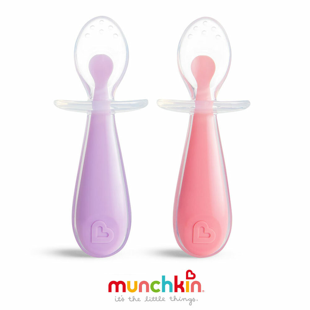 Отзывы на Набор ложек обучающих Munchkin Gentle Scoop, пластик/силикон, с ограничителем, розовый/сиреневый, 2 шт