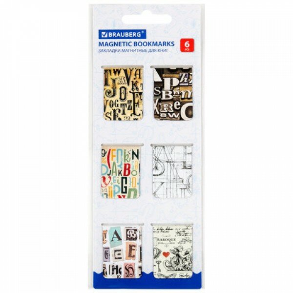 Закладки для книг магнитные, "LETTERS", набор 6 шт, 35x25 мм, BRAUBERG, 113166 информация: