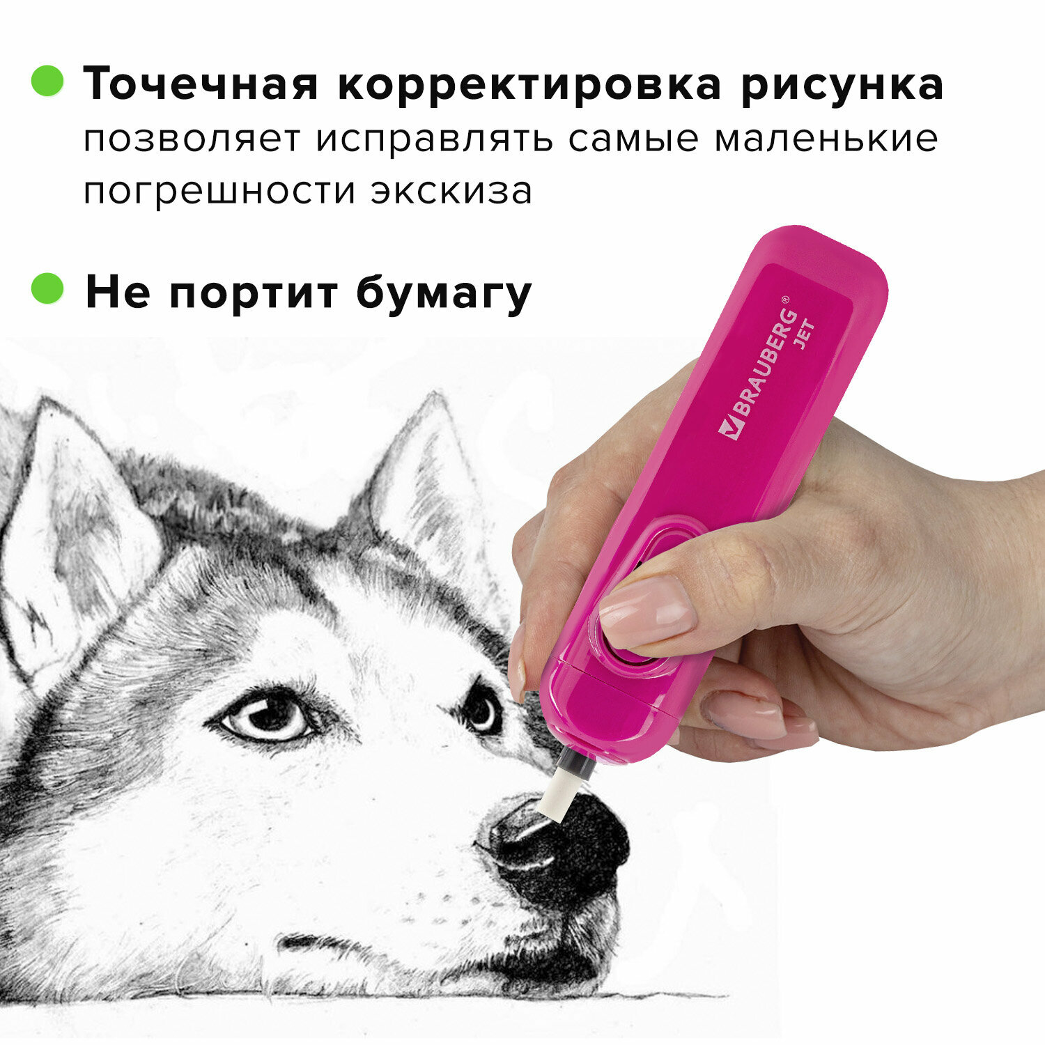 Ластик электрический BRAUBERG JET, питание от 2 батареек ААА, 8 сменных ластиков, розовый, 229617 информация: