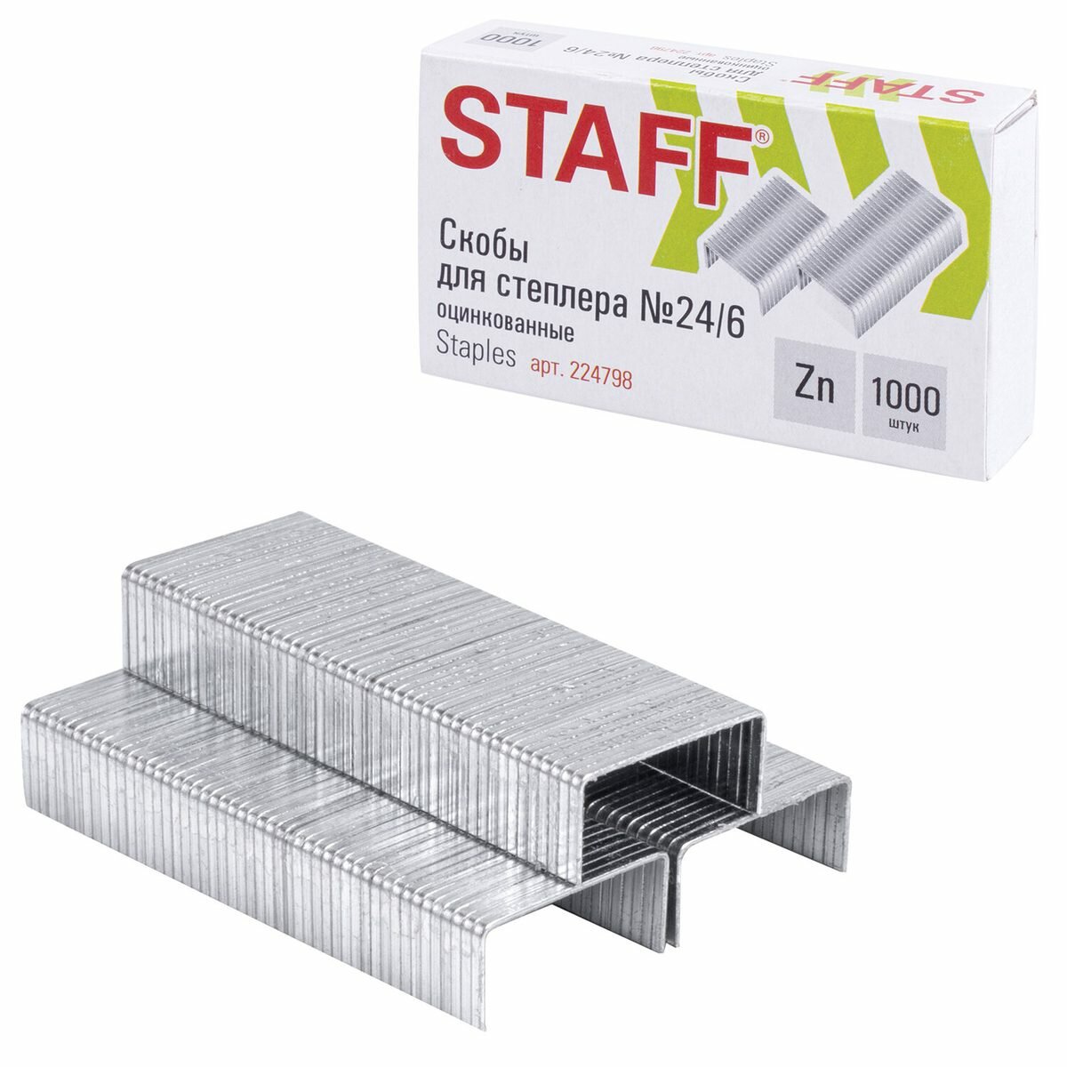Скобы для степлеров Staff, №24/6, 1000шт. (224798), 20 уп. информация: