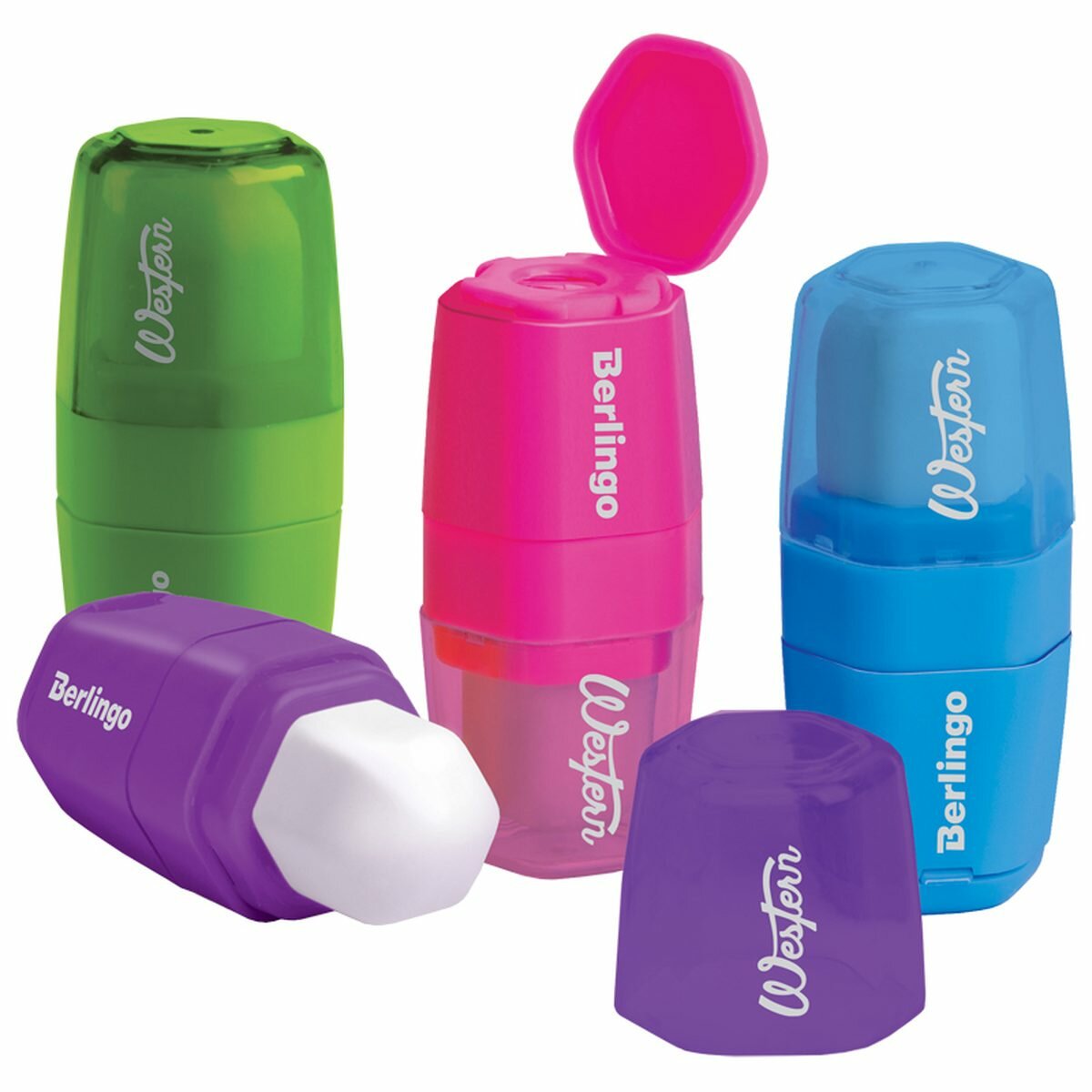 Отзывы на Точилка ручная пластиковая с ластиком Berlingo Western (1 отверстие, с контейнером) (BLc_00140), 1шт.