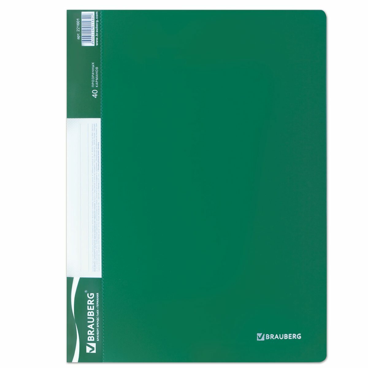 Папка 40 вкладышей BRAUBERG стандарт, зеленая, 0,7 мм, 221601 410 ₽