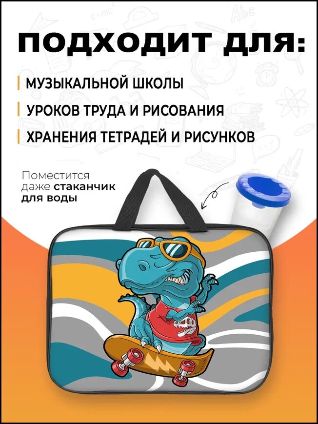 Папка на молнии А4 AXLER "Dino", сумка с ручками для тетрадей рисунков и чертежей, уроков труда изо технологии творчества в школе, полиэстер