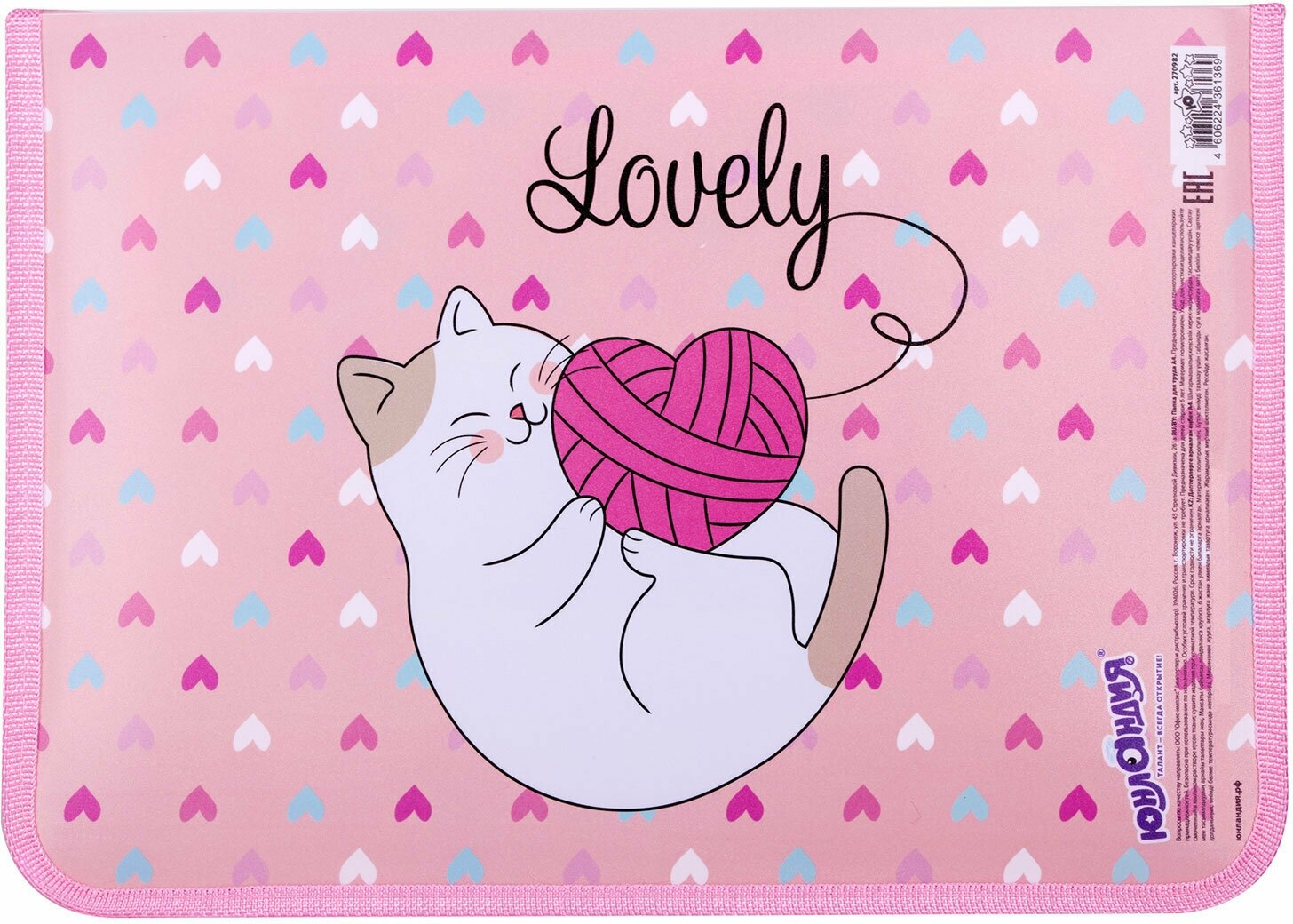 Папка для труда на молнии юнландия А4, 1 отделение, откидная планка, органайзер, "Fluffy cat", 270982 информация: