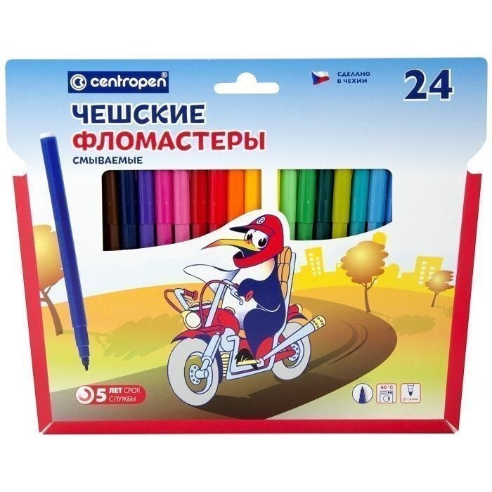 10 цен на Фломастеры Centropen 24 цвета, пингвины, смываемые, вентилируемый колпачок, полибег (7790/24-86)