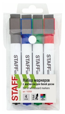 Маркеры для белой доски Staff на магните со стирателем, 4 цвета "Manager" WBM-002, 3 мм (152006)