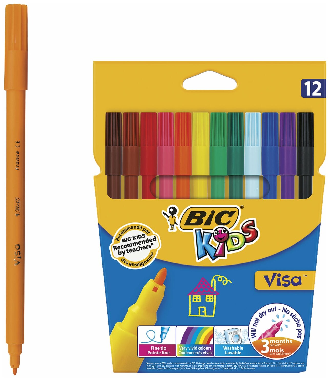 Отзывы на Фломастеры BIC "Kids Visa", 12 цветов, суперсмываемые, вентилируемый колпачок, европодвес, 889695, 888695