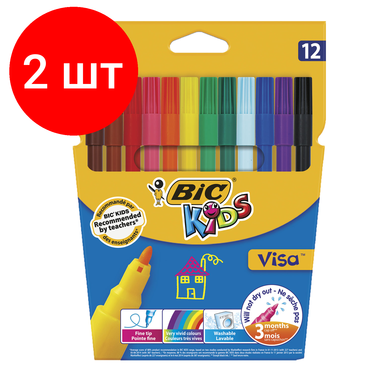 10 цен на Комплект 2 шт, Фломастеры BIC "Kids Visa", 12 цветов, суперсмываемые, вентилируемый колпачок, европодвес, 889695, 888695