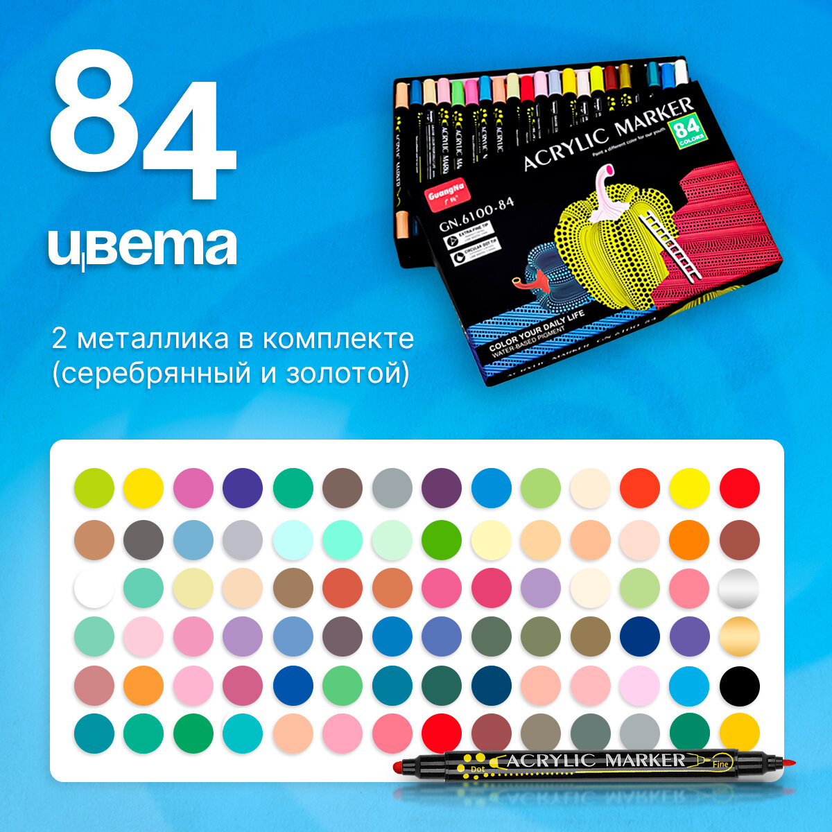 Двусторонние акриловые маркеры 84 цвета на водной основе, набор для скетчинга/рисования на любых поверхностях Cozy&Dozy информация: