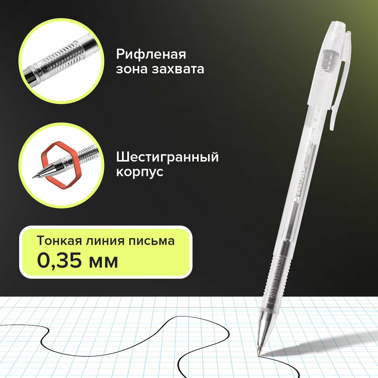 Ручка гелевая BRAUBERG Jet, КОМПЛЕКТ 12 штук, ЧЕРНАЯ, узел 0,5 мм, линия письма 0,35 мм, 880208 информация: