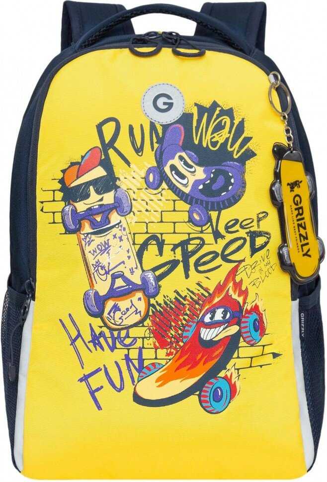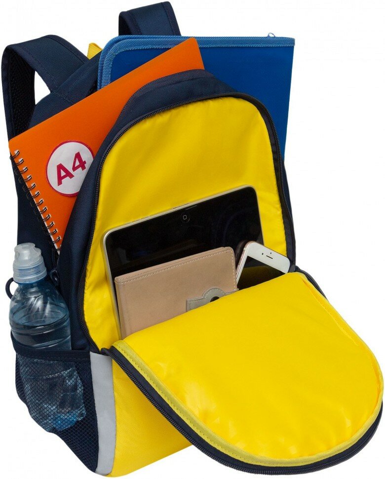 Рюкзак школьный GRIZZLY RB-451-7/2 тёмно-синий - желтый информация: