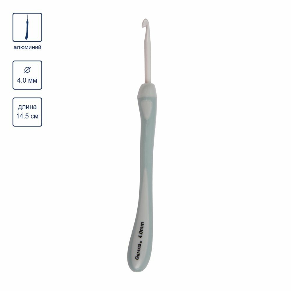 Крючки для вязания "Gamma" RHT крючок с прорезин. ручкой алюминий d 4.0 мм 14.5 см в блистере c покрытием информация: