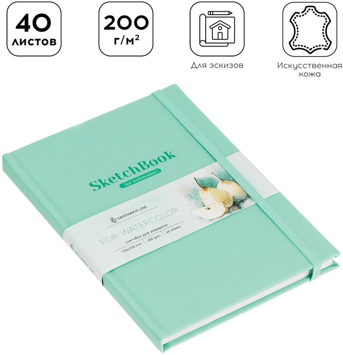 Отзывы на Скетчбук для акварели 40л, 150*200 Greenwich Line, бирюзовый, кожзам, на резинке, 200г/м2