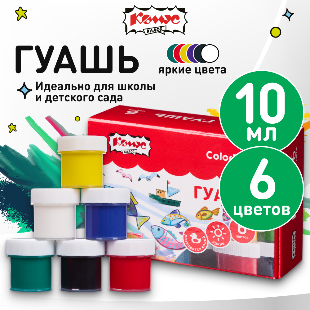 10 цен на Гуашь для рисования Комус Класс Отличник, набор 6 цветов, 10 мл