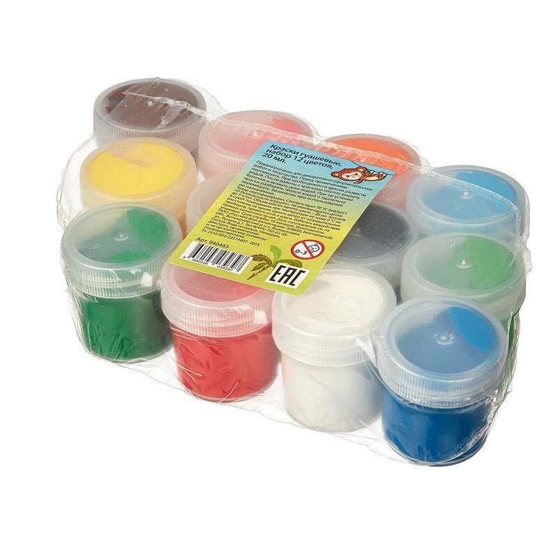Гуашь для рисования Комус Класс, набор 12 цветов, 20 мл баночка информация: