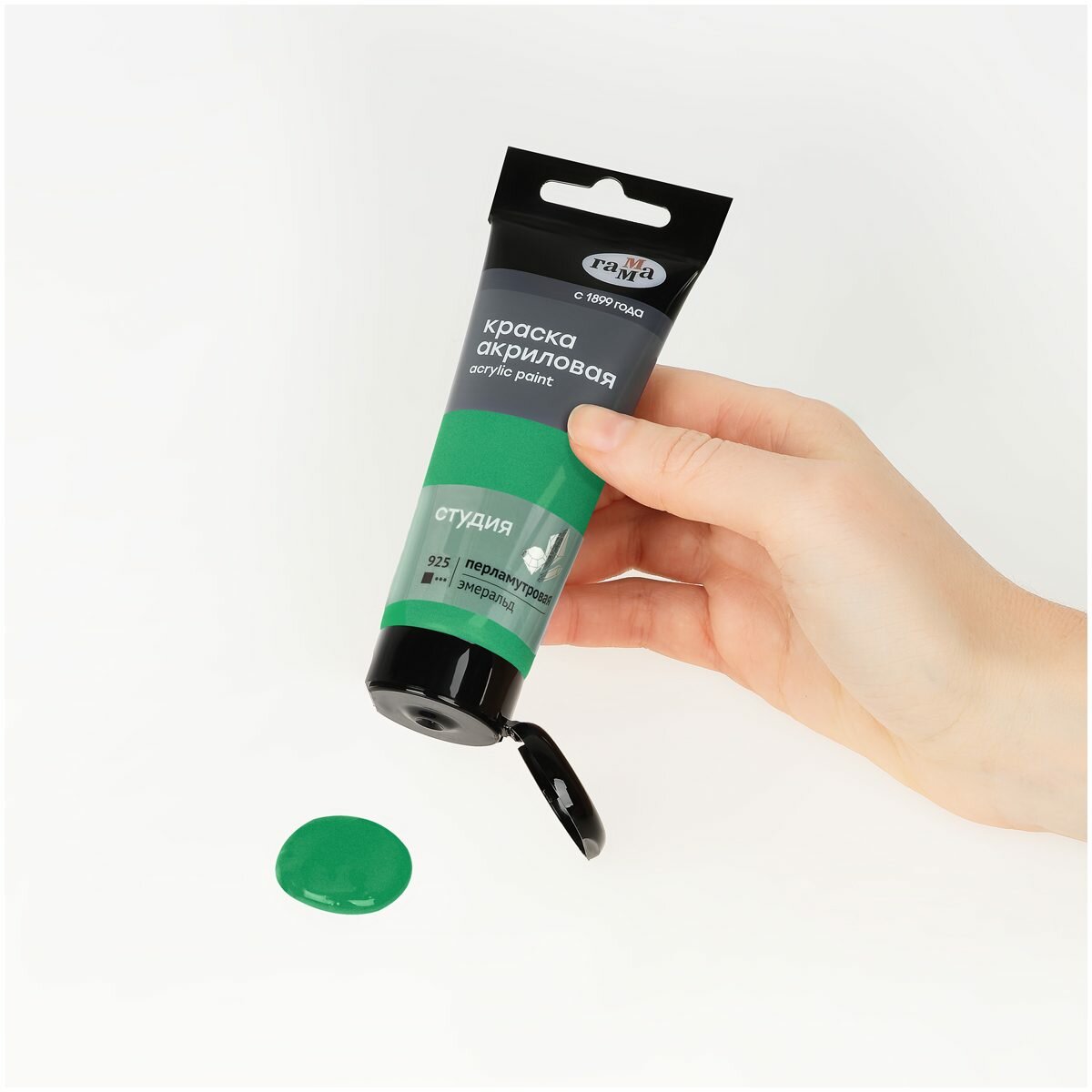 10 цен на Краска акриловая художественная перламутровая Гамма "Студия", пластиковая туба, 75мл, эмеральд (280220925), 3шт.