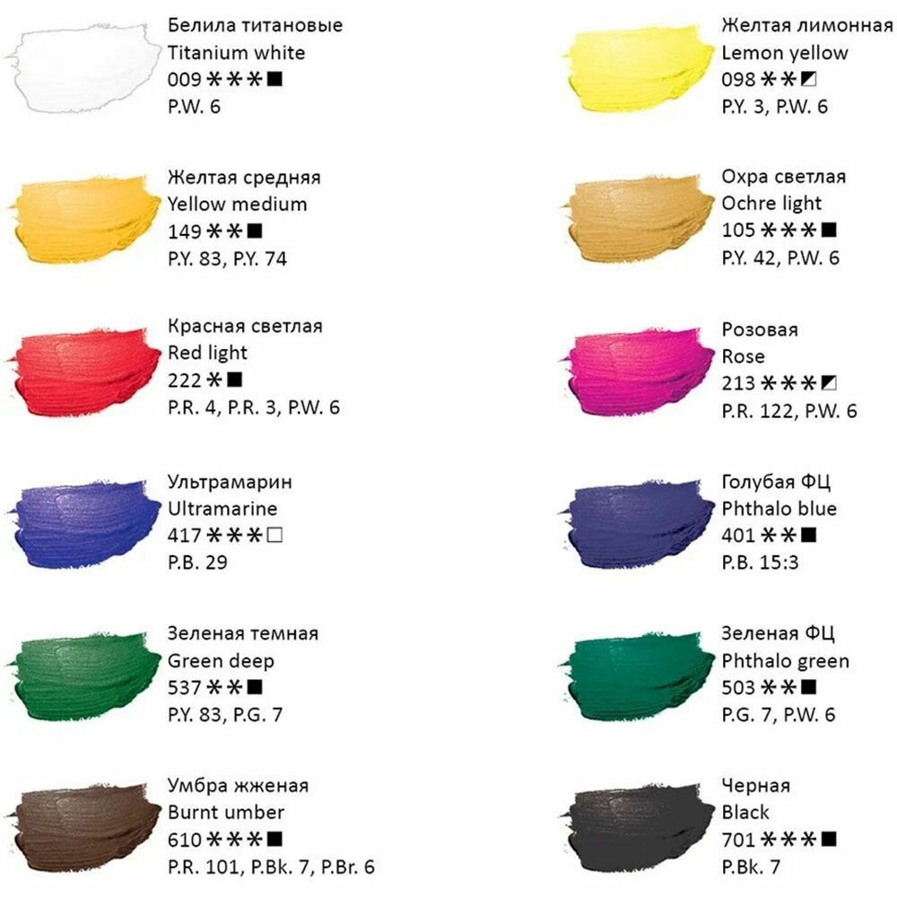 10 цен на Краски акриловые Гамма "Студия", 12 цветов в тубах
