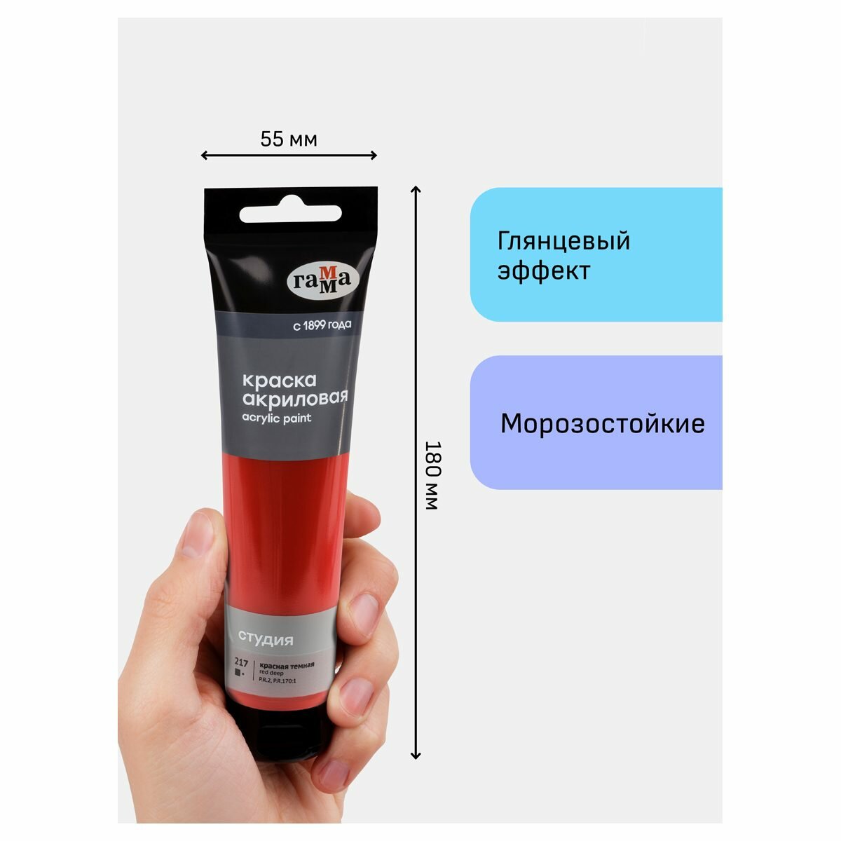 Краска акриловая художественная Гамма "Студия", пластиковая туба, 75мл, красная темная (280220217) 418 ₽