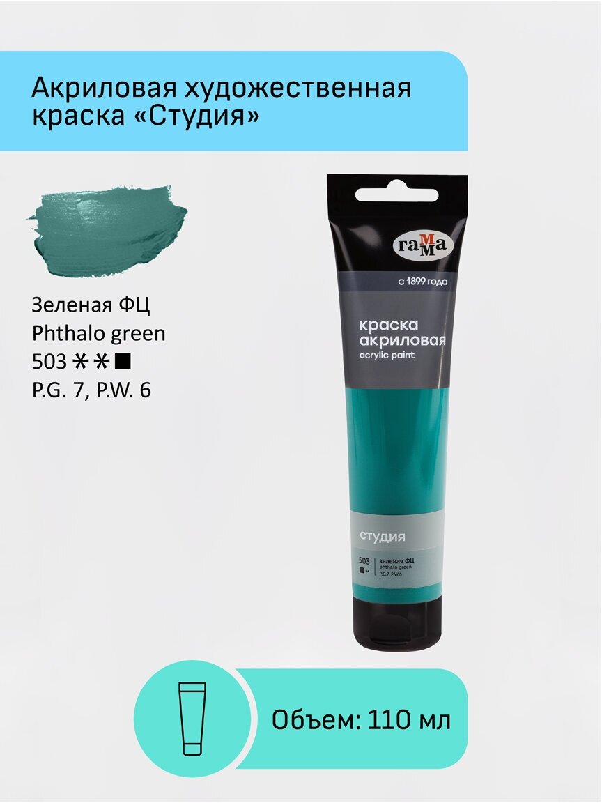 Краска акриловая художественная Гамма "Студия", 110мл, пластиковая туба, зеленая фц (арт. 356450) информация: