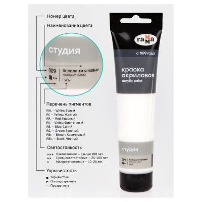 Акрил гамма Студия 110мл Белила титановые информация: