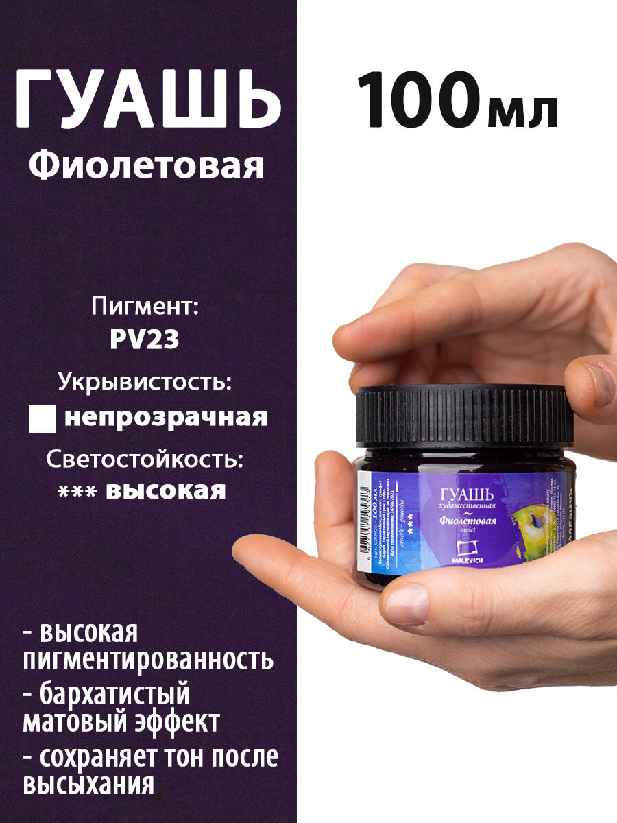 10 цен на Гуашь Малевичъ, фиолетовая, гуашевая краска матовая , 100 мл