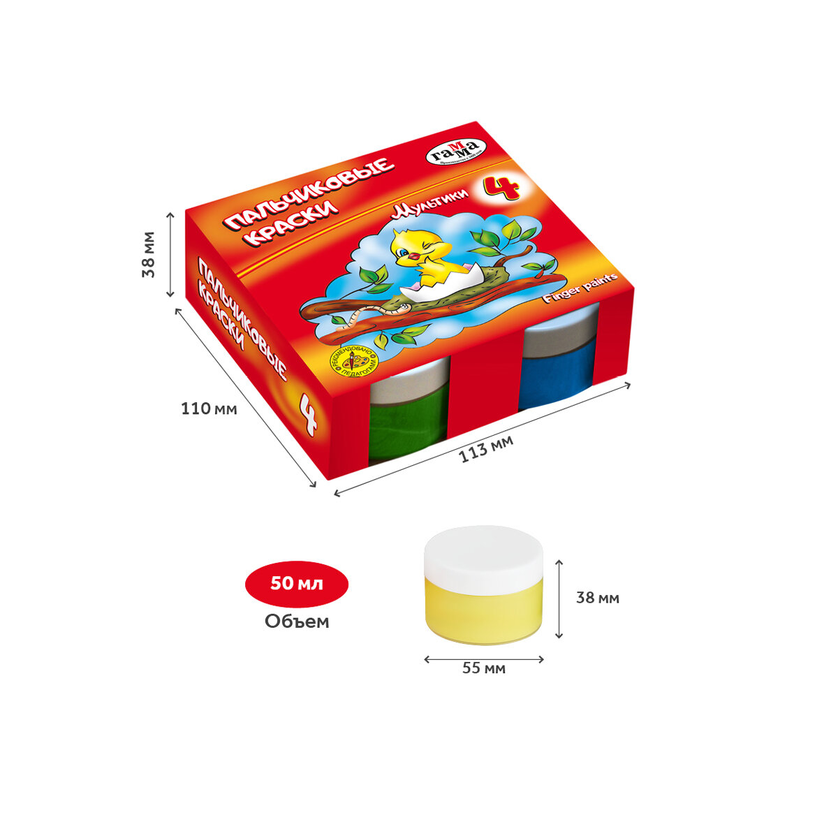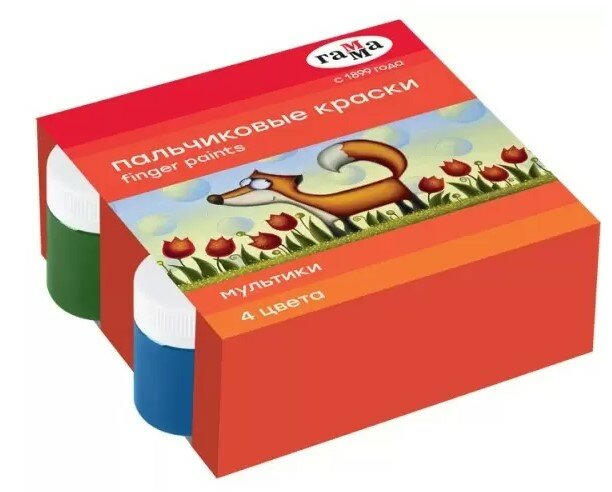 | Комплектация | Краски для рисования Гамма, Мультики, детские, пальчиковые, 4 цвета по 50 мл, 1 уп |