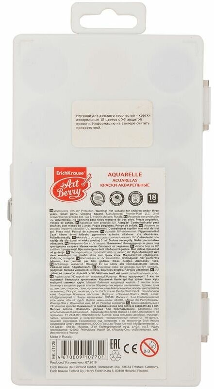 Отзывы на Акварель ArtBerry, 18 цветов, без кисти, с УФ защитой яркости, пластик, европодвес Erich Krause 244928