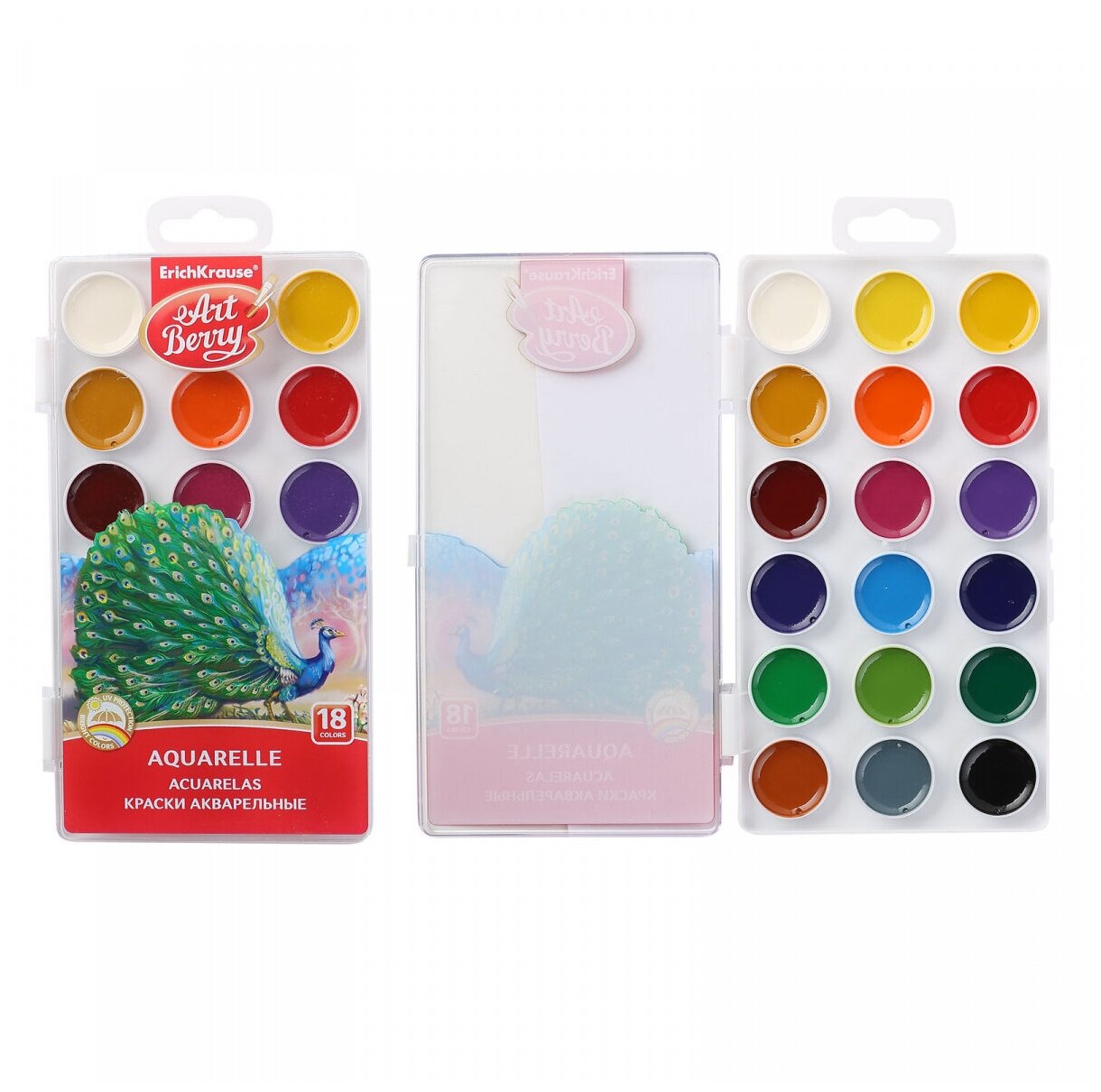 Акварель ArtBerry, 18 цветов, без кисти, с УФ защитой яркости, пластик, европодвес Erich Krause 244928 информация: