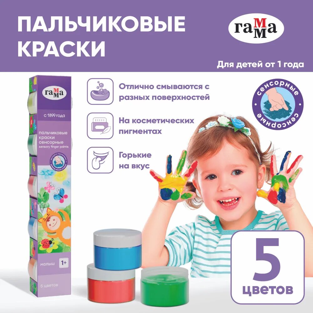 Краски пальчиковые Гамма "Малыш", сенсорные, 1+, 05цв, 50мл. упак. информация: