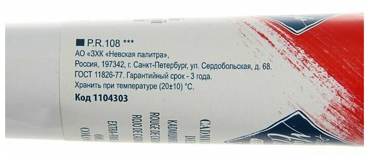 Краска масляная 'Мастер Класс' № 3 46 мл цвет 1104303 кадмий темно-красный информация: