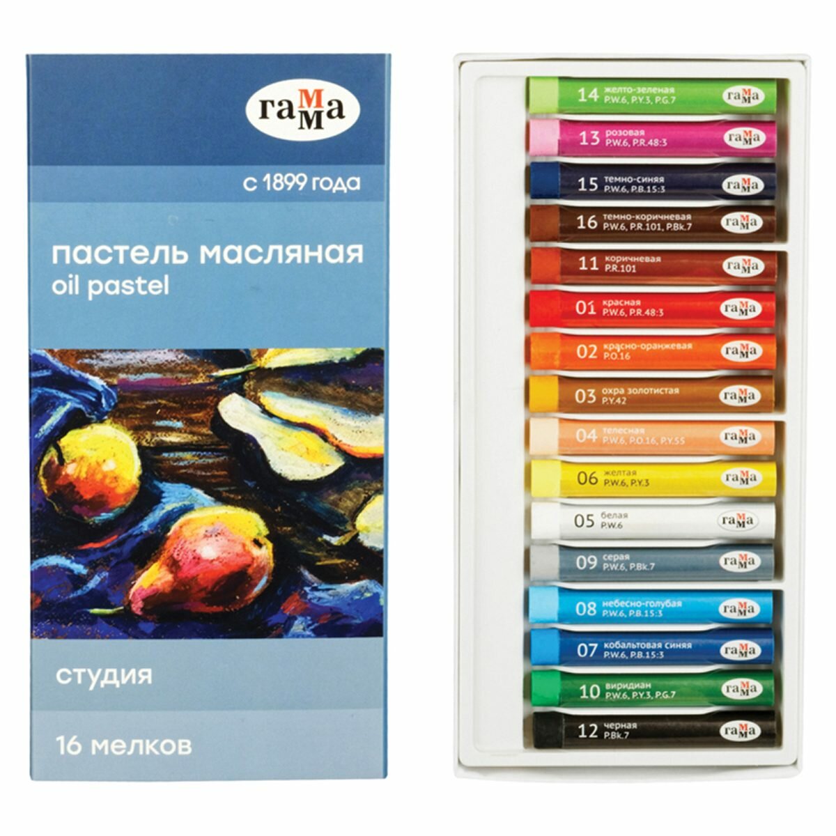 Пастель масляная 16 цветов Гамма "Студия", картон. упак. (160320206), 12 уп. информация: