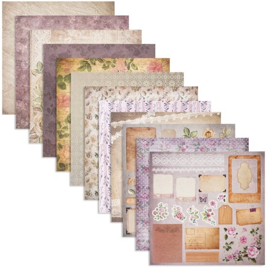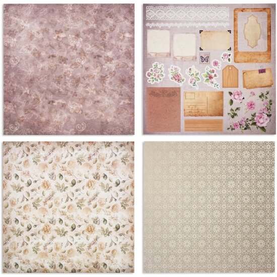 Бумага для скрапбукинга 15х15 см "Винтаж", двусторонняя, 12 листов, 12 дизайнов