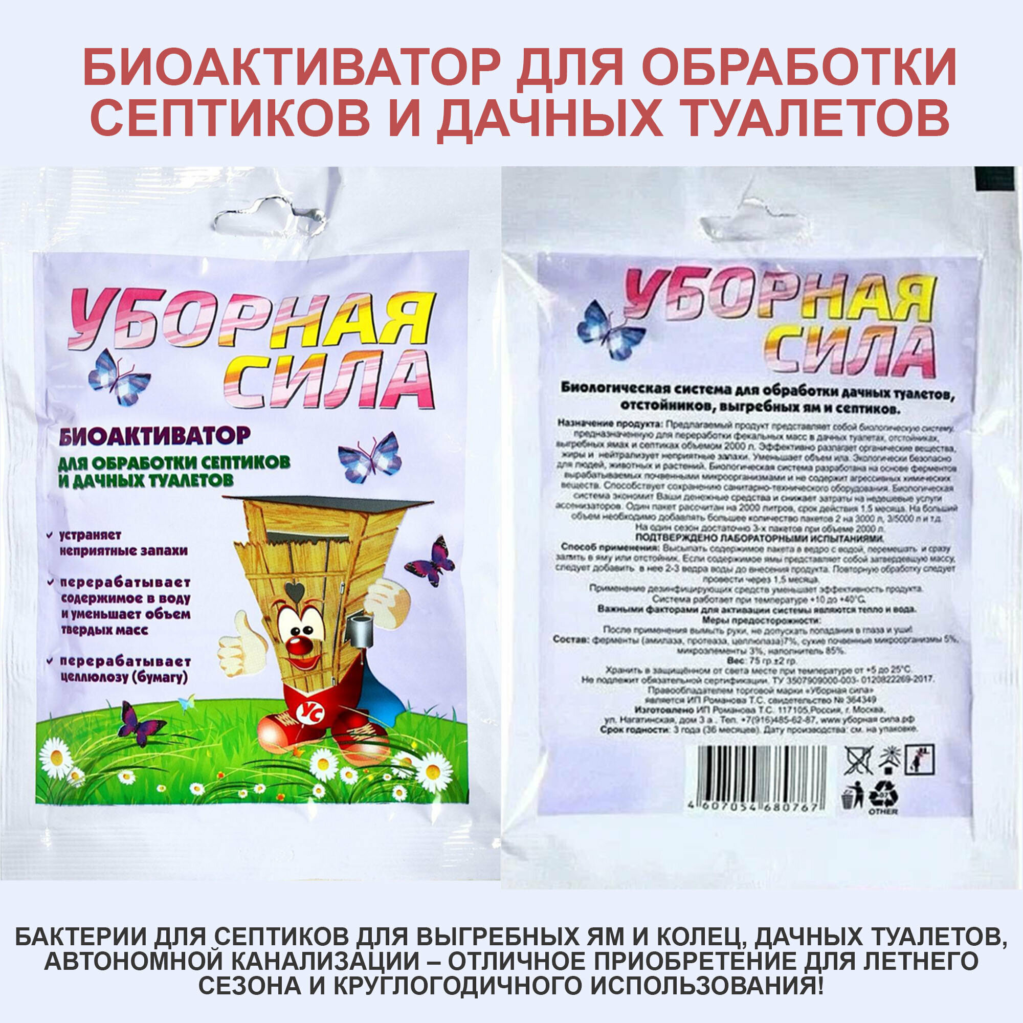 Биоактиватор Уборная Сила, для септиков и туалетов, биоразложение, 75г информация: