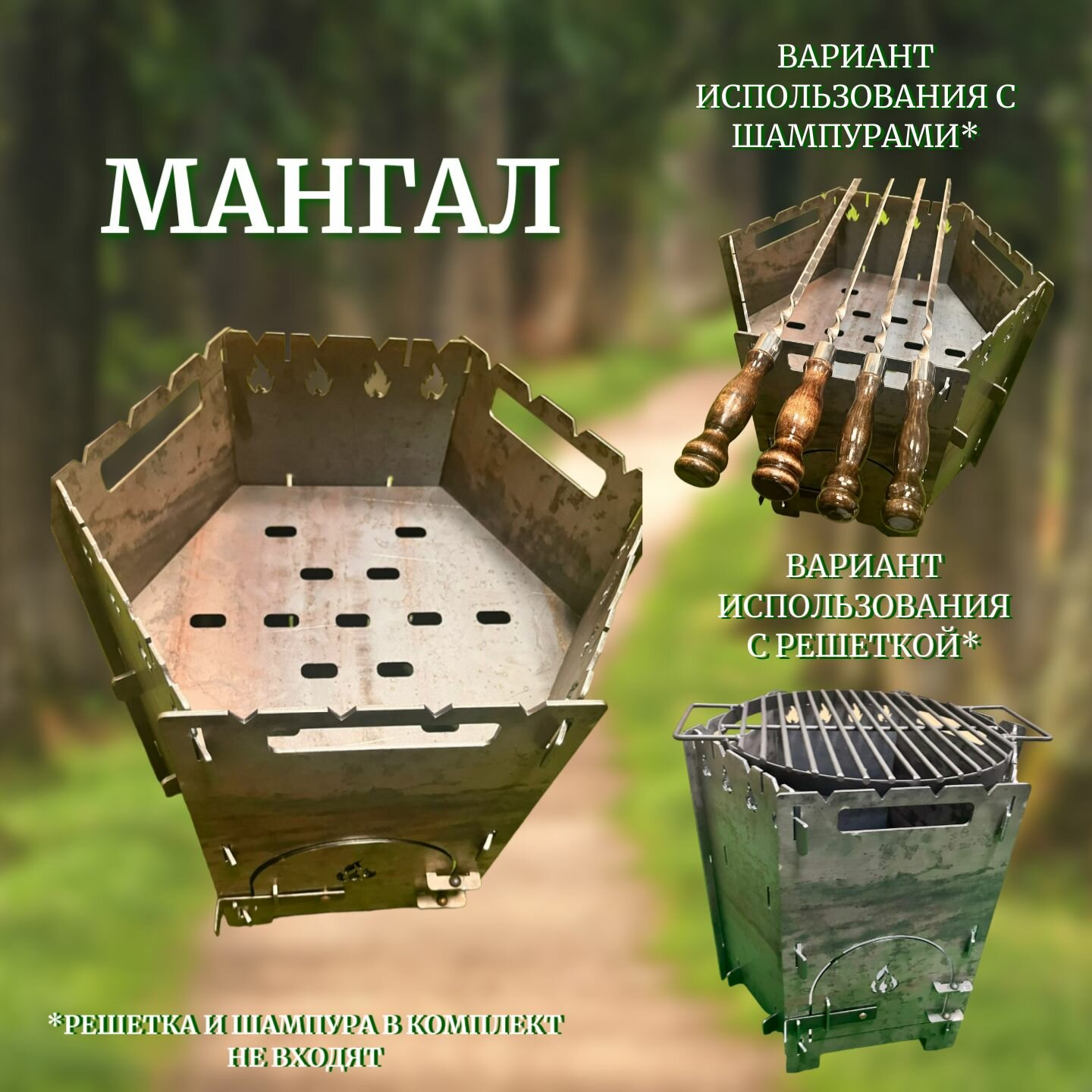 Большая печь мангал без сумки, костровая чаша, плита 4 в 1 разборная для казана, с дверцей сталь 3 мм. Горячая Сталь информация:
