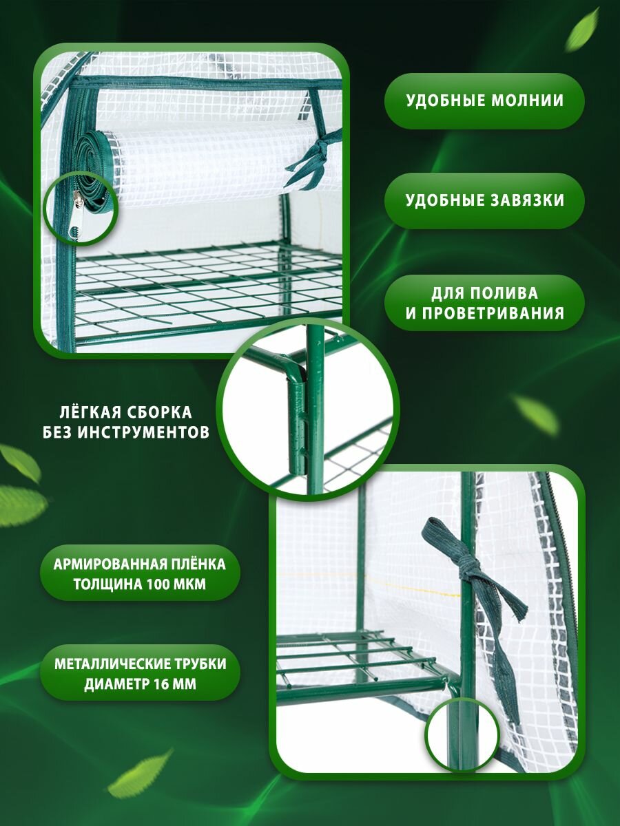 Мини теплица парник стеллаж для рассады домашний разборный 125*68*52 см 3 полки этажерка для цветов подставка для растений на балкон информация:
