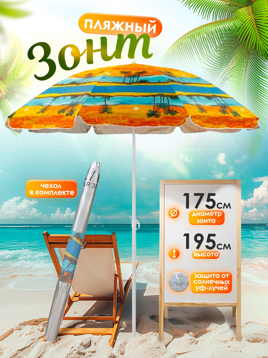 Отзывы на Зонт пляжный большой складной, садовый от солнца для отдыха 1,75 м в чехле, (оранжевый/принт "Песчаный пляж") 35LR