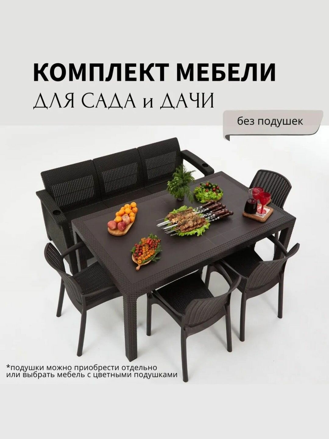 Комплект садовой мебели из ротанга Set 5+2+1+Bt, коричневые подушки