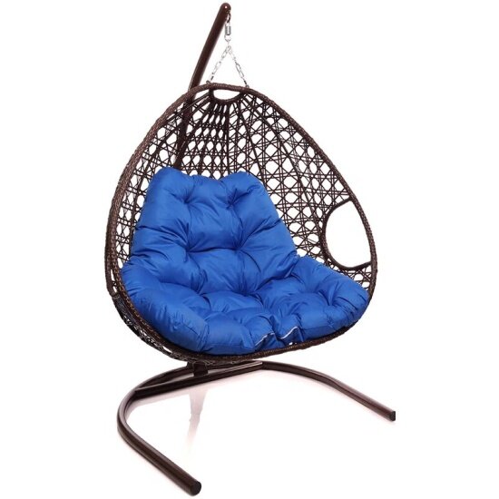 Подвесное кресло M-group для двоих люкс с ротангом коричневое, синяя подушка информация: