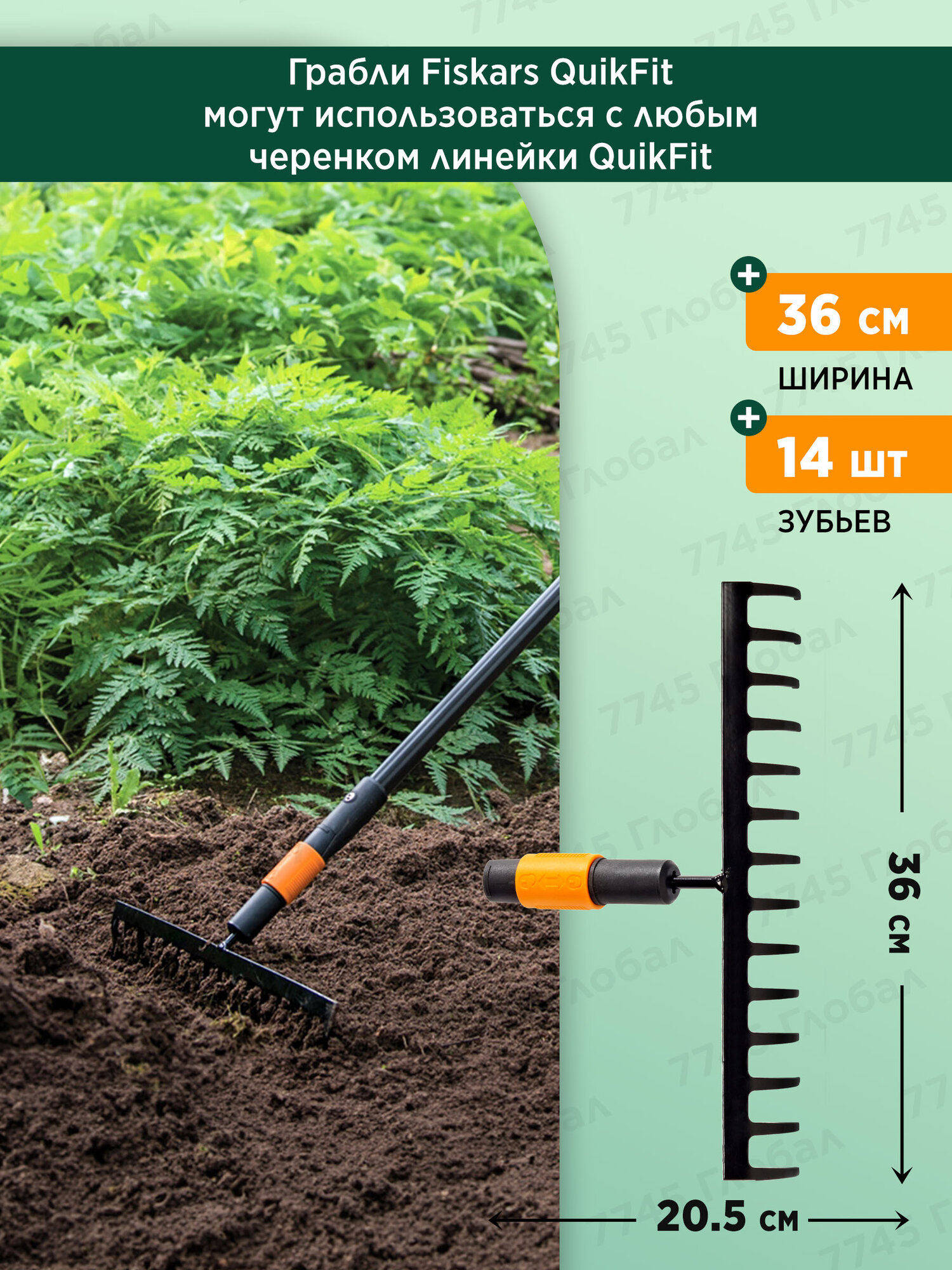 10 цен на Грабли садовые зубчатые без черенка FISKARS QuikFit 135511 1000653