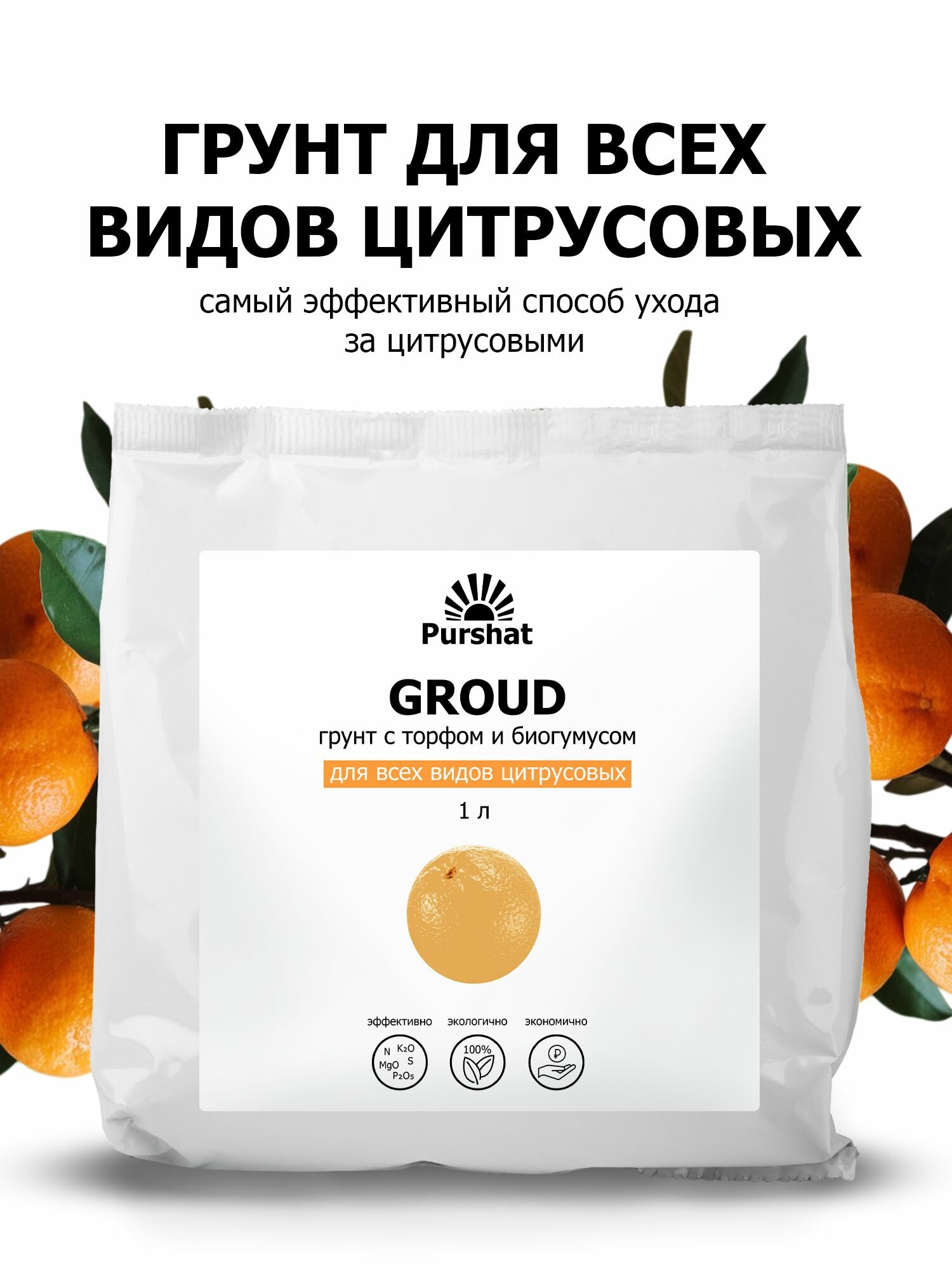 Грунт (земля) для цитрусовых (лимон, мандарин, авокадо) Пуршат 1 л. Питательный почвогрунт с торфом и биогумусом (Purshat) информация: