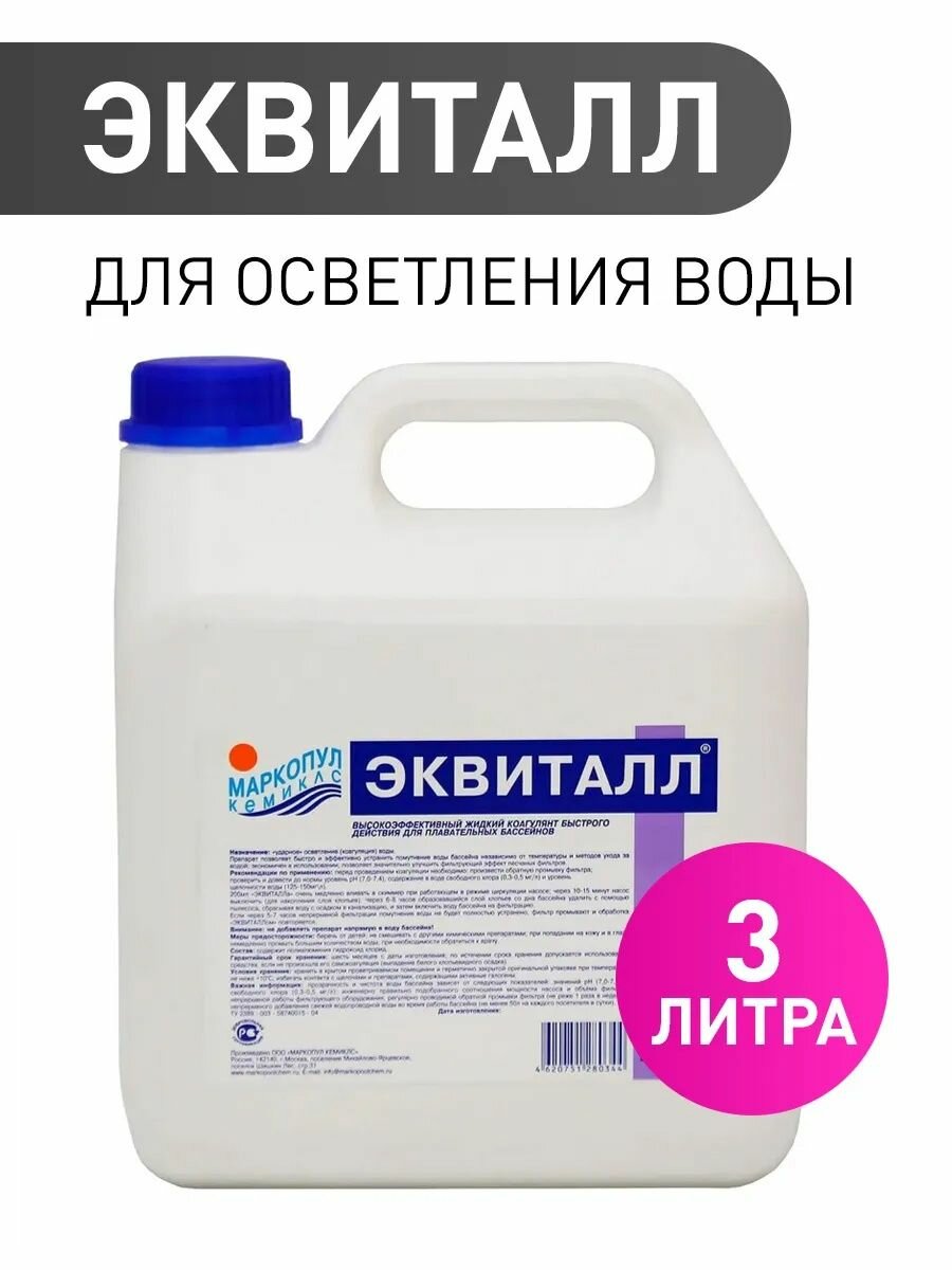 10 цен на Химия для бассейна - Коагулянт/Флокулянт: "Эквиталл" (3 литра) Жидкость для осветления и очистки воды / Средство для ухода за водой "Маркопул Кемиклс