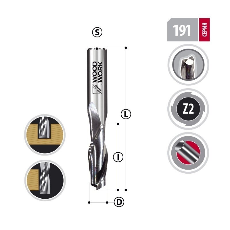 Фреза спиральная Woodwork 191.0832.70, Upcut Z2 D=8 I=32 L=70 S=8
