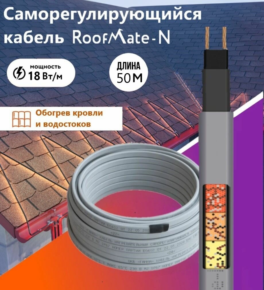 10 цен на Греющий кабель для обогрева кровли и водостоков RoofMate-N, 18 Вт, бухта 50 м.