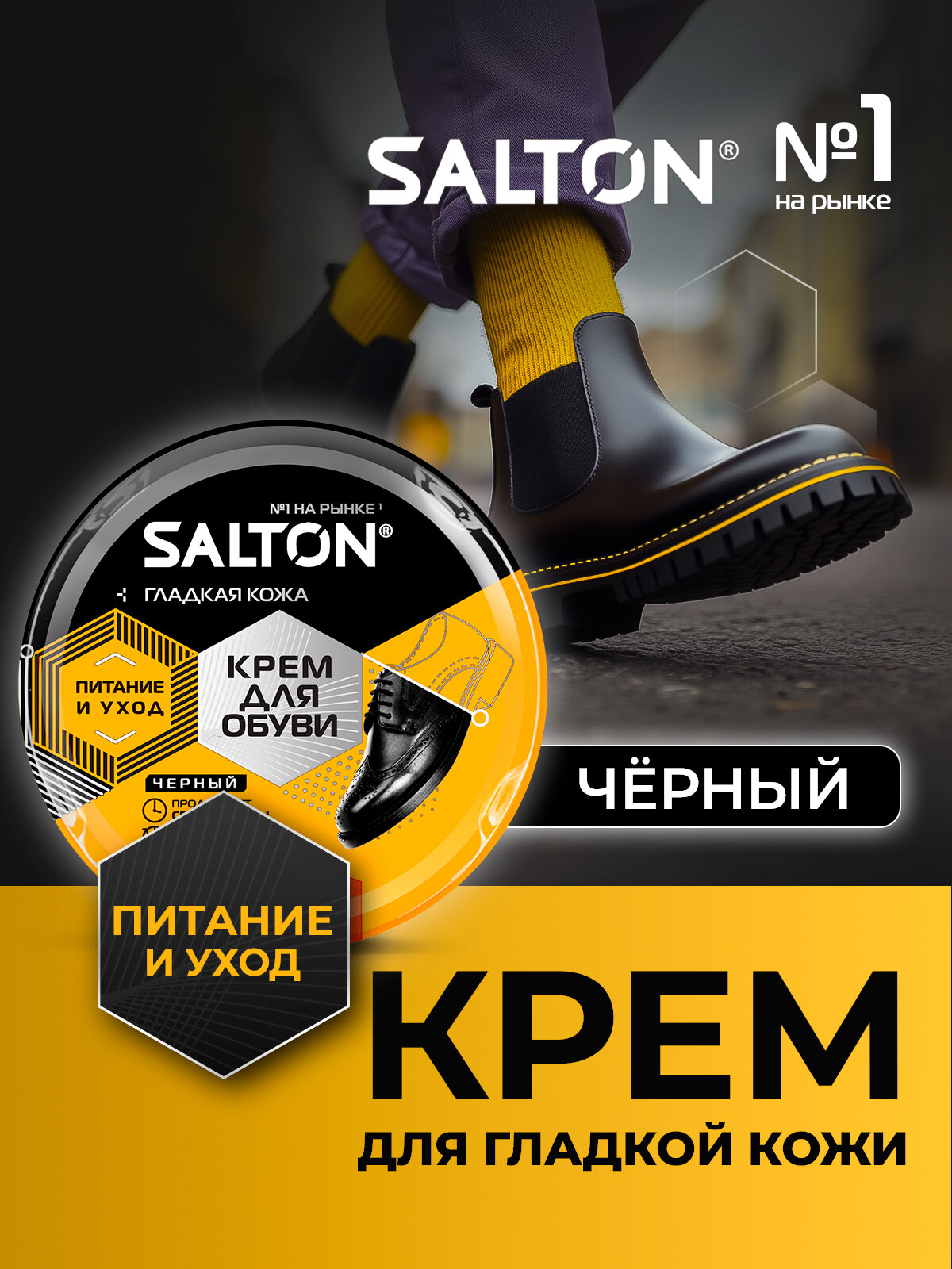 Черный крем для обуви из гладкой кожи, питание и уход, Salton 50 мл, 1 шт информация: