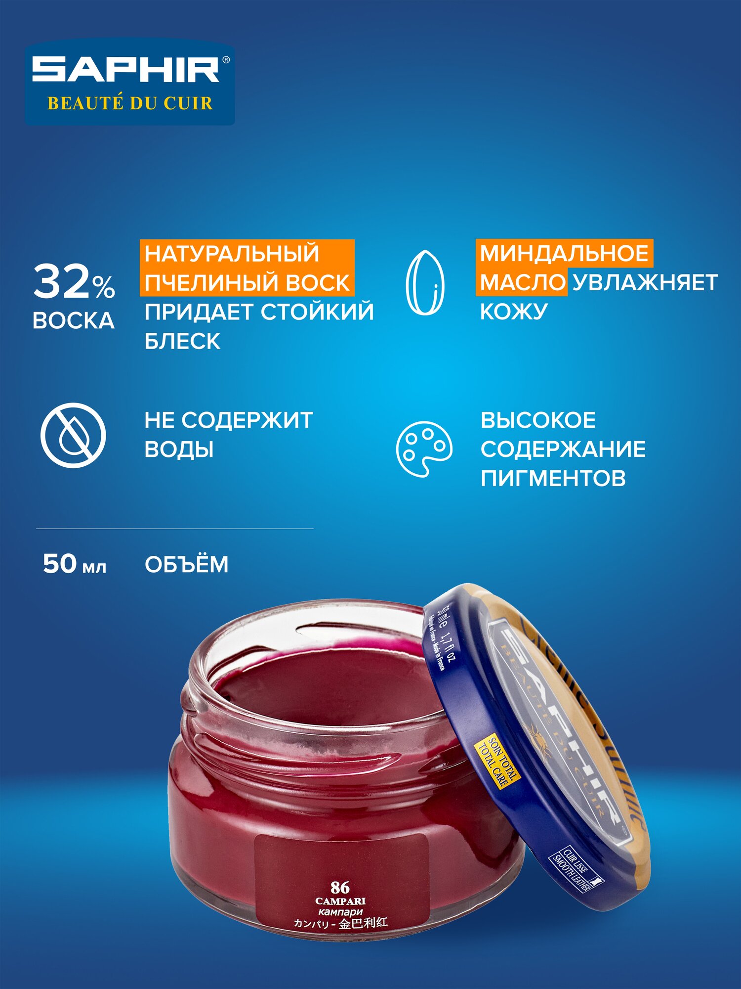 Крем-банка Saphir Creme Surfine sphr0032 для гладкой кожи, цвет бежевый, 50мл. 1 315 ₽